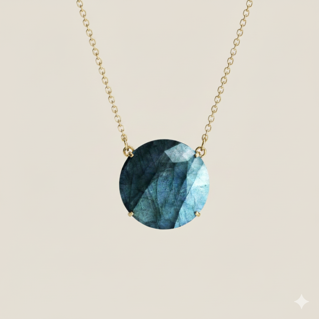 Inspired by the wisdom of the heavens, the Celestial Necklace features labradorite, known as the Stone of Transformation. It awakens intuition, shields against negativity, and supports your inner transformation. Designed with a delicate 13-inch chain that can be worn as a choker or layered for a mystical look. Just as the night sky broadens your perspectives, the Celestine Necklace invites you to listen to your deeper wisdom and allows you to see things from a bigger perspective.